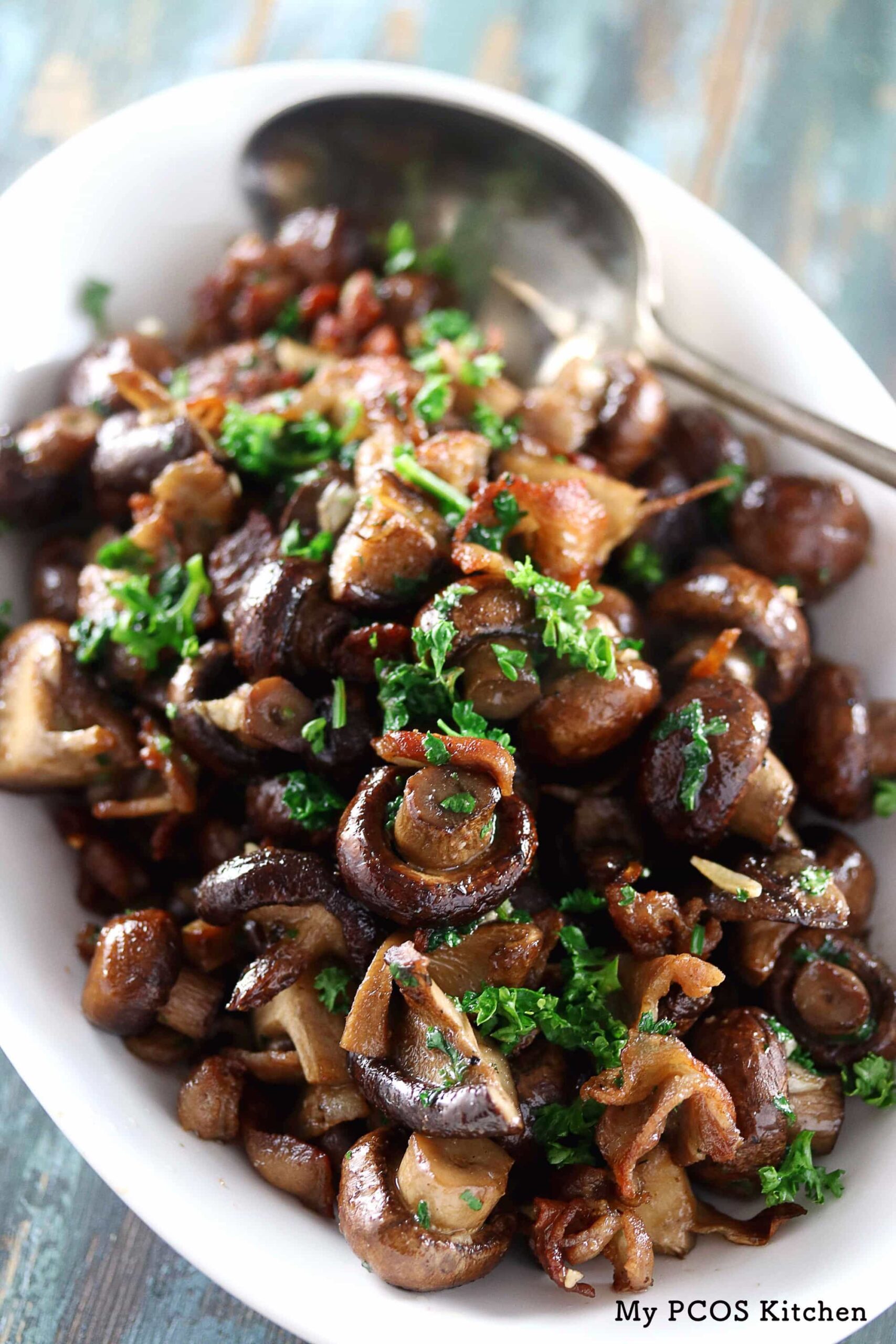 My PCOS Kitchen - Roasted Buttery Mushrooms & Bacon - This appetizer is perfect for any holiday like Thanksgiving or Christmas! Low Carb, Keto, Gluten-free!