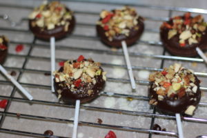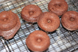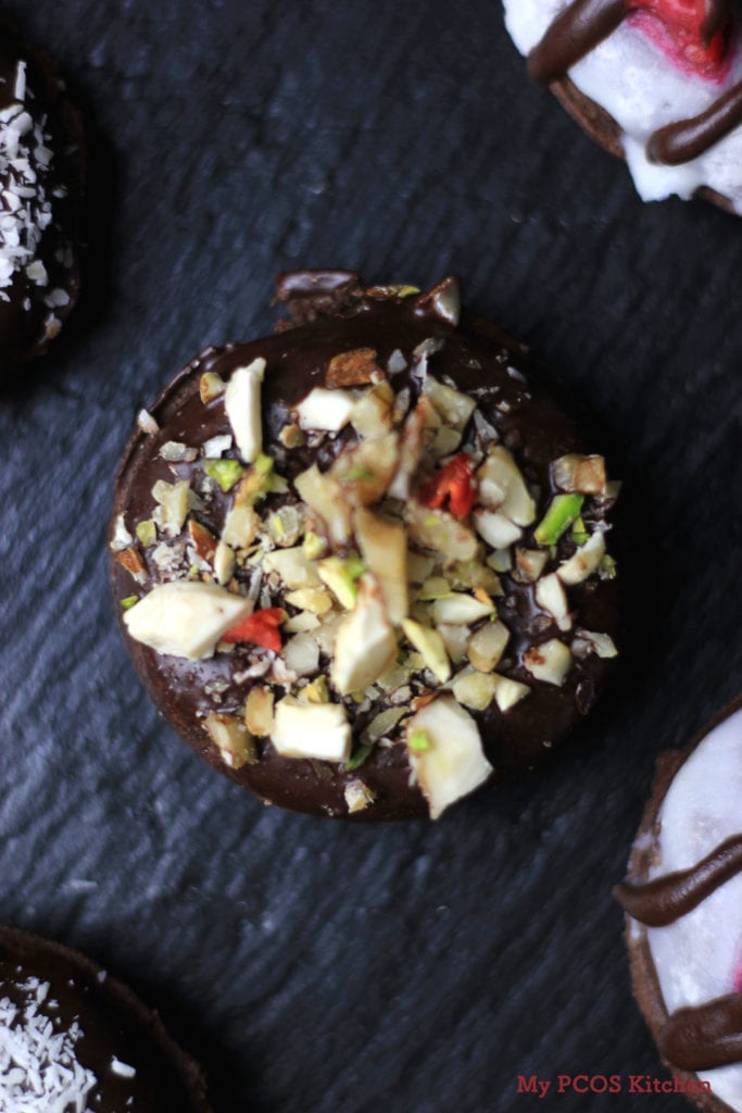 - Once thick, dip the top of each donut into the chocolate sauce. Immediately top with the chopped nuts while the chocolate sauce is still runny so that they can stick. Once coated, let them cool on the counter (in winter) or in the fridge (in summer).