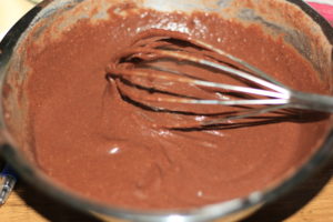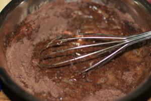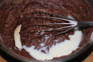 - In a bowl, mix the dry ingredients together with a whisk. In a separate bowl, mix the wet ingredients together. Pour the wet into the dry ingredients and whisk until combined.
