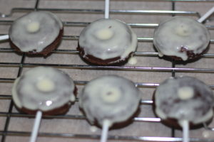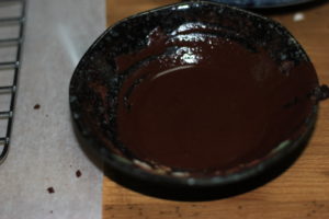 - Once thick, dip the top of each donut into the chocolate sauce.